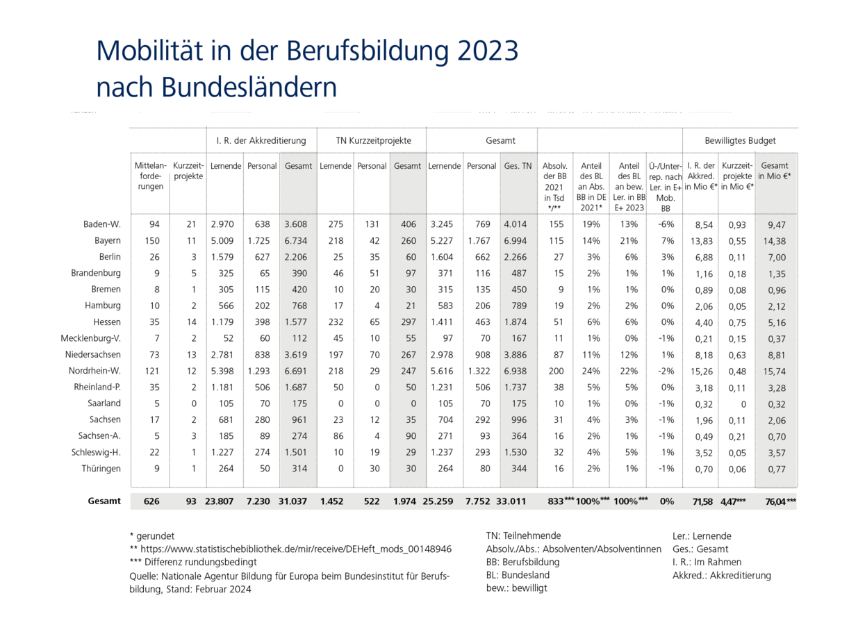 Statistik „Mobilität in der Berufsbildung 2023 nach Bundeländern“ der NA beim BIBB ist lizenziert unter der Creative Commons Lizenz 4.0 International: Namensnennung – Weitergabe unter gleichen Bedingungen.