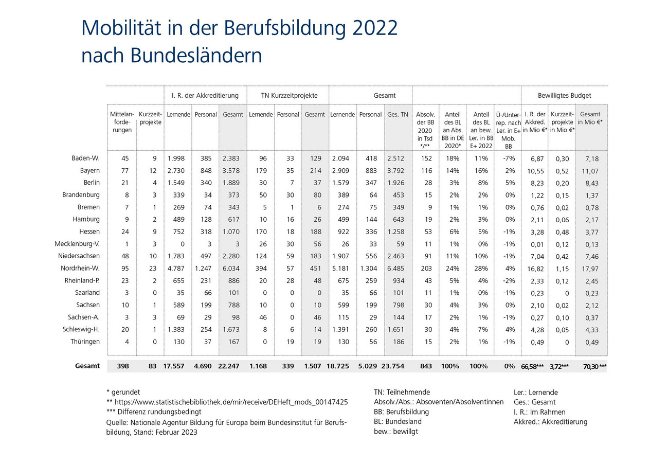 Statistik „Mobilität in der Berufsbildung 2022“ der NA beim BIBB ist lizenziert unter der Creative Commons Lizenz 4.0 International: Namensnennung – Weitergabe unter gleichen Bedingungen.