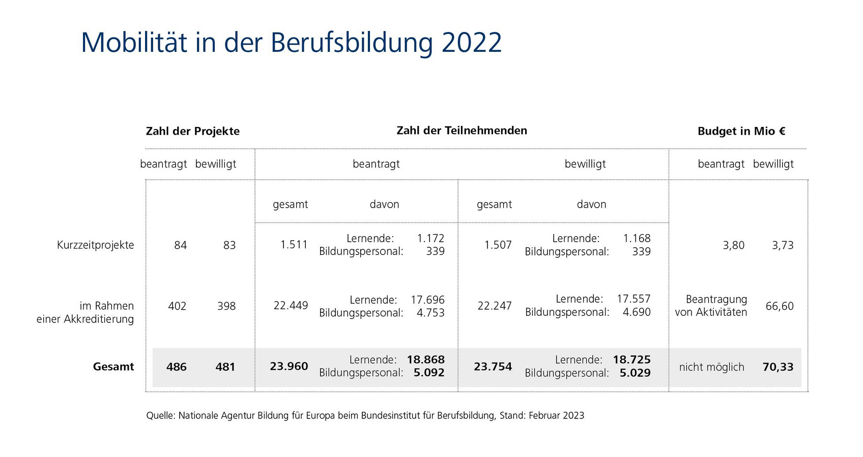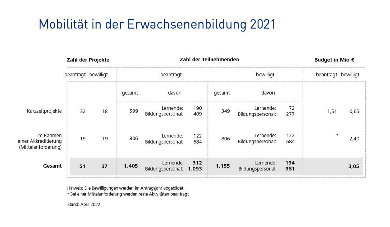 Statistik „Entwicklung der Mobilitäten in der Erwachsenenbildung 2021 bis 2022“ der NA beim BIBB ist lizenziert unter der Creative Commons Lizenz 4.0 International: Namensnennung – Weitergabe unter gleichen Bedingungen.