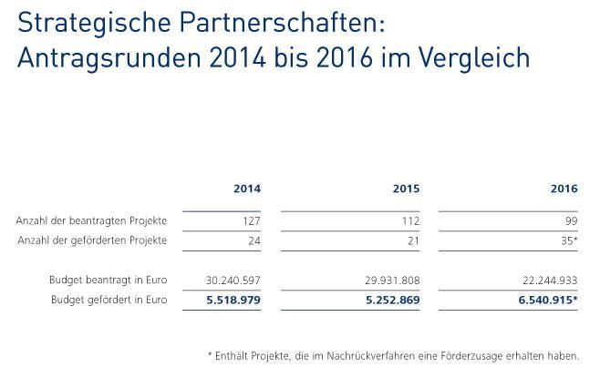 Statistik „Antragsrunden 2014 bis 2016 im Vergleich – Strategische Partnerschaften in der Berufsbildung“ der NA beim BIBB ist lizenziert unter der Creative Commons Lizenz 4.0 International: Namensnennung – Weitergabe unter gleichen Bedingungen.