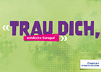 Postkarte mit Statement zu Erfahrungen mit Erasmus+ in der Erwachsenenbildung: „Trau dich, entdecke Europa“ …