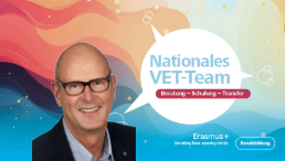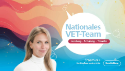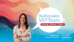 Im Rahmen von Erasmus+ 2021 bis 2027 wird auch das „Nationale VET-Team“ gefördert. Das VET-Team setzt sich aus Expertinnen und Experten der Berufsbildung zusammen und zeichnet sich durch langjährige Erfahrung in der Arbeit mit europäischen Instrumenten der Berufsbildung aus, wie etwa Lernergebnisorientierung oder Qualitätssicherung (EQAVET). Die Aufgabe der VET-Expertinnen und VET-Experten ist die Beratung und Information von Projektträgern, die im Rahmen des Programms Erasmus+ gefördert werden.